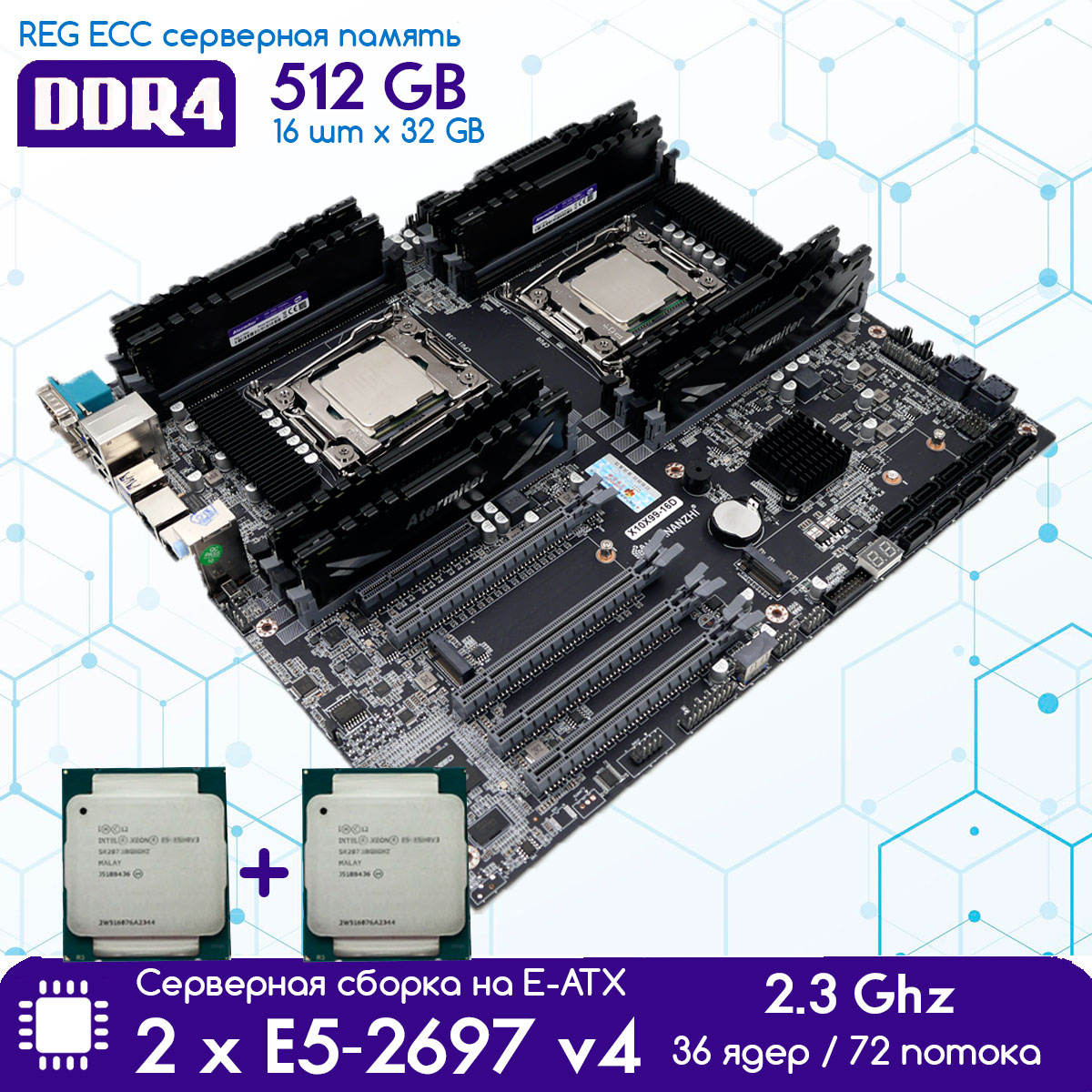 1. Материнская плата 2 x LGA 2011-3 HUANANZHI X10X99-16D 16 х DDR4 2400 МГц 2 x M2 Nvme VGA, E-АТХ, новая