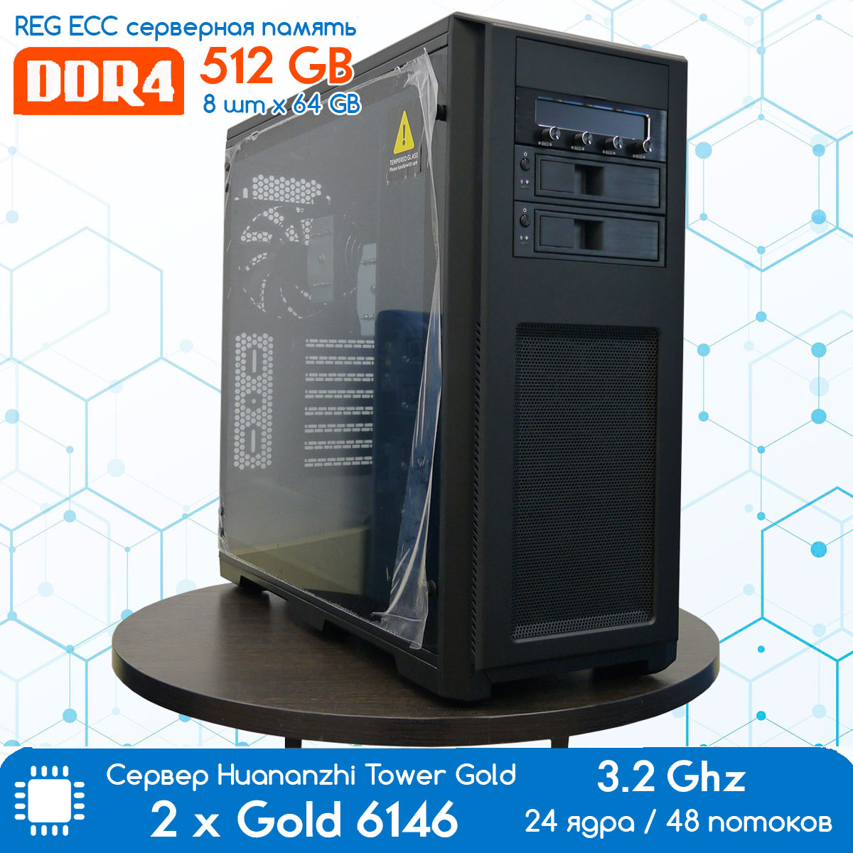 Высокопроизводительный сервер с удаленным управлением и мониторингом на базе двухпроцессорной платы HUANANZHI X11D-16D, двух 12-ядерных процессоров Intel Xeon Gold 6146 LGA 3647 3,2 ГГц и 512 Гб регистровой памяти DDR4 (без дисков)