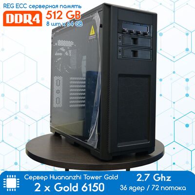 Высокопроизводительный сервер с удаленным управлением и мониторингом на базе двухпроцессорной платы HUANANZHI X11D-16D, двух 12-ядерных процессоров Intel Xeon Gold 6150 LGA 3647 2,7 ГГц и 512 Гб регистровой памяти DDR4 (без дисков)