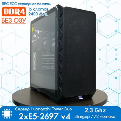 Малошумный и высокопроизводительный сервер с удаленным управлением и мониторингом на базе двухпроцессорной платы HUANANZHI X10X99-16D, двух 18-ядерерных процессоров Intel Xeon E5-2697 V4 2,3 ГГц - без дисков и ОЗУ