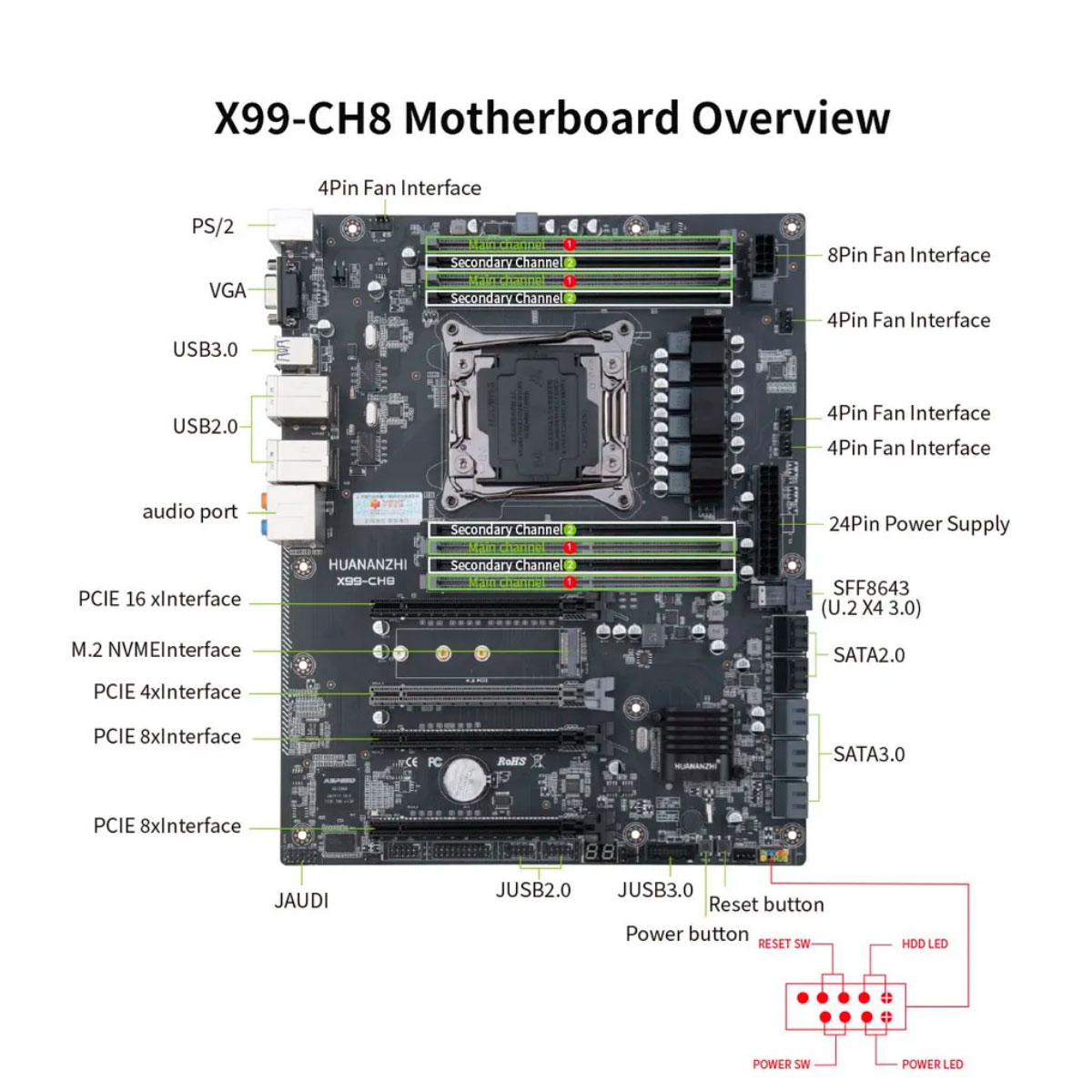 Мат. плата: серверная плата LGA 2011-3 HUANANZHI X99-CH8 8хDDR4 2400 МГц 1xM2 Nvme 1xU.2 SFF-8639 VGA, АТХ