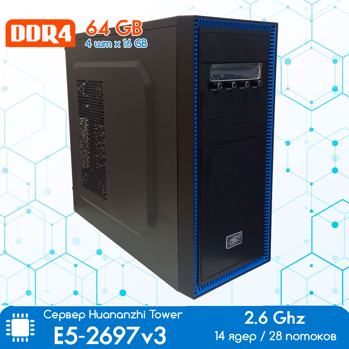 Малошумный и производительный сервер на базе однопроцессорной платы HUANANZHI X99-CH8, процессора Intel Xeon E5-2697 V3 2,6 ГГц и 64 Гб памяти DDR4. (без дисков)